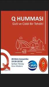 Pandemi sürecinde meslektaşlarımız ile birlikte olmak ve mesleki eğitimlerimize ara vermeden devam etmek için gerçekleştireceğimiz eğitimlerin ilki olan Q-Fever konulu çevrimiçi toplantımız CEVA Firması Ürün Müdürü Sayın Serkan YENİAY’ın anlatımlarıyla 28 Ekim Çarşamba Saat 19:30 da Zoom Uygulaması üzerinden gerçekleşecektir. Tüm meslektaşlarımızın katılması dileğiyle.