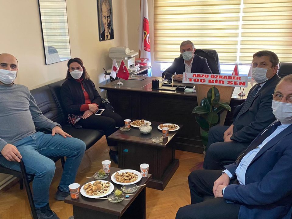 Toç-Bir-Sen Yönetim Kurulu Başkanı Sayın Arzu ÖZKADER ile yönetim kurulu üyeleri sayın Kenan ERDEM ve sayın Murat KÖLE odamızı ziyaret ederek yeni yönetime başarılar dilediler.