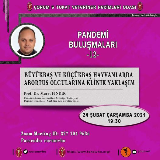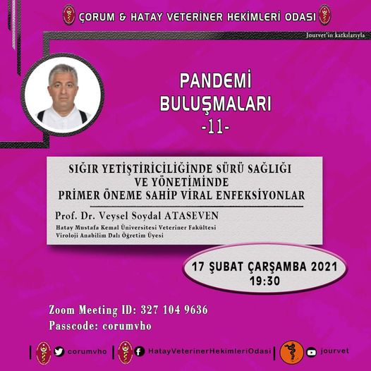Çorum ve Hatay Veteriner Hekimleri Odaları ile Jourvet işbirliğiyle ‘’Pandemi Buluşmaları’’ kapsamındaki 11. çevrimiçi eğitimimize 17 Şubat Çarşamba günü Mustafa Kemal Üniversitesi Veteriner Fakültesi Viroloji Anabilim […]