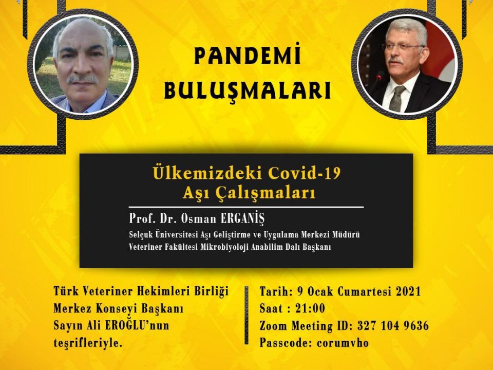 Pandemi Buluşmalarında bu hafta Yerli Covid-19 Aşı çalışmaları yürüten Prof. Dr. Osman ERGANİŞ hocamız ve Türk veteriner Hekimleri Birliği Konsey Başkanımız Ali EROĞLU meslektaşlarımızla bir araya […]